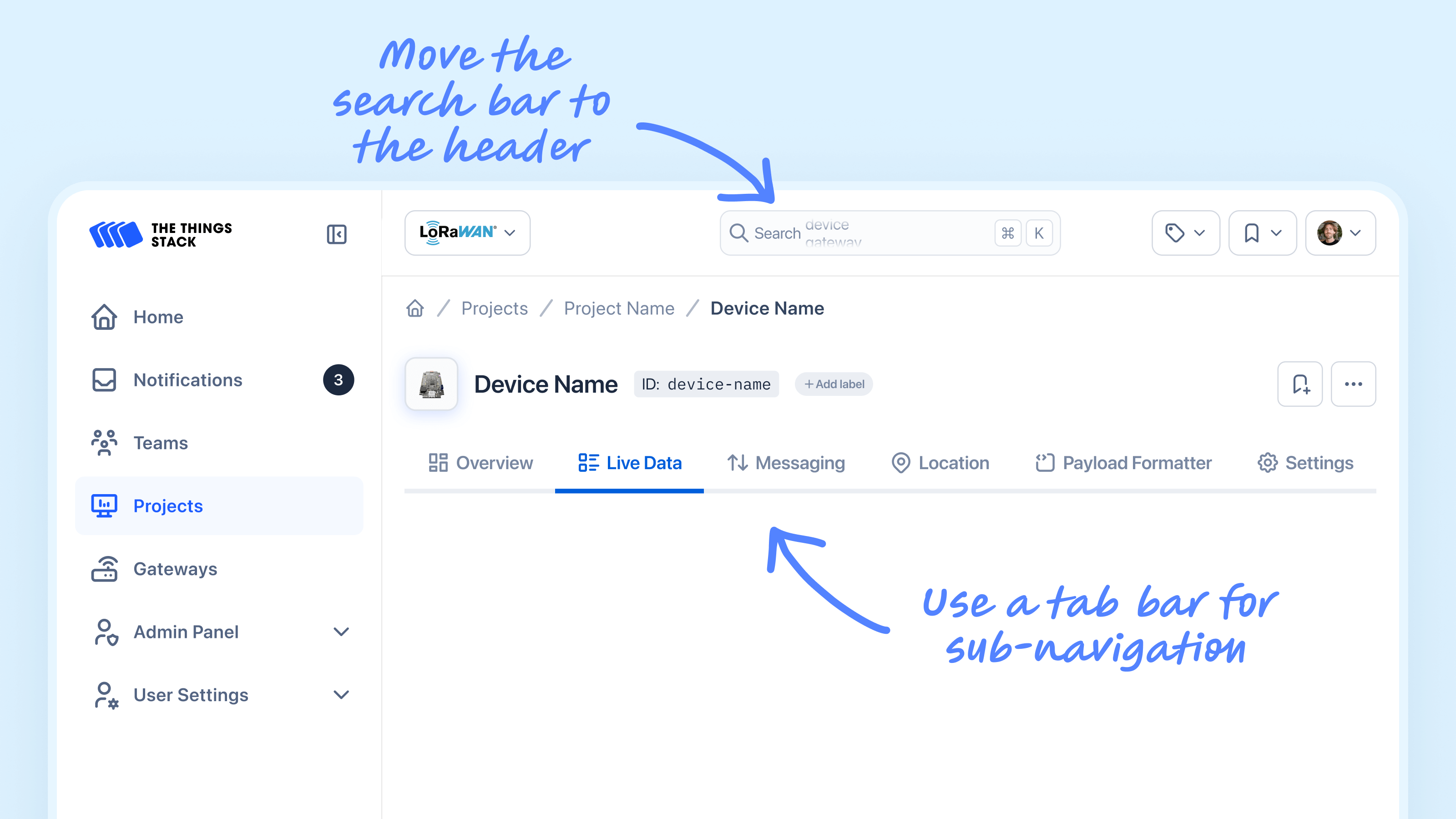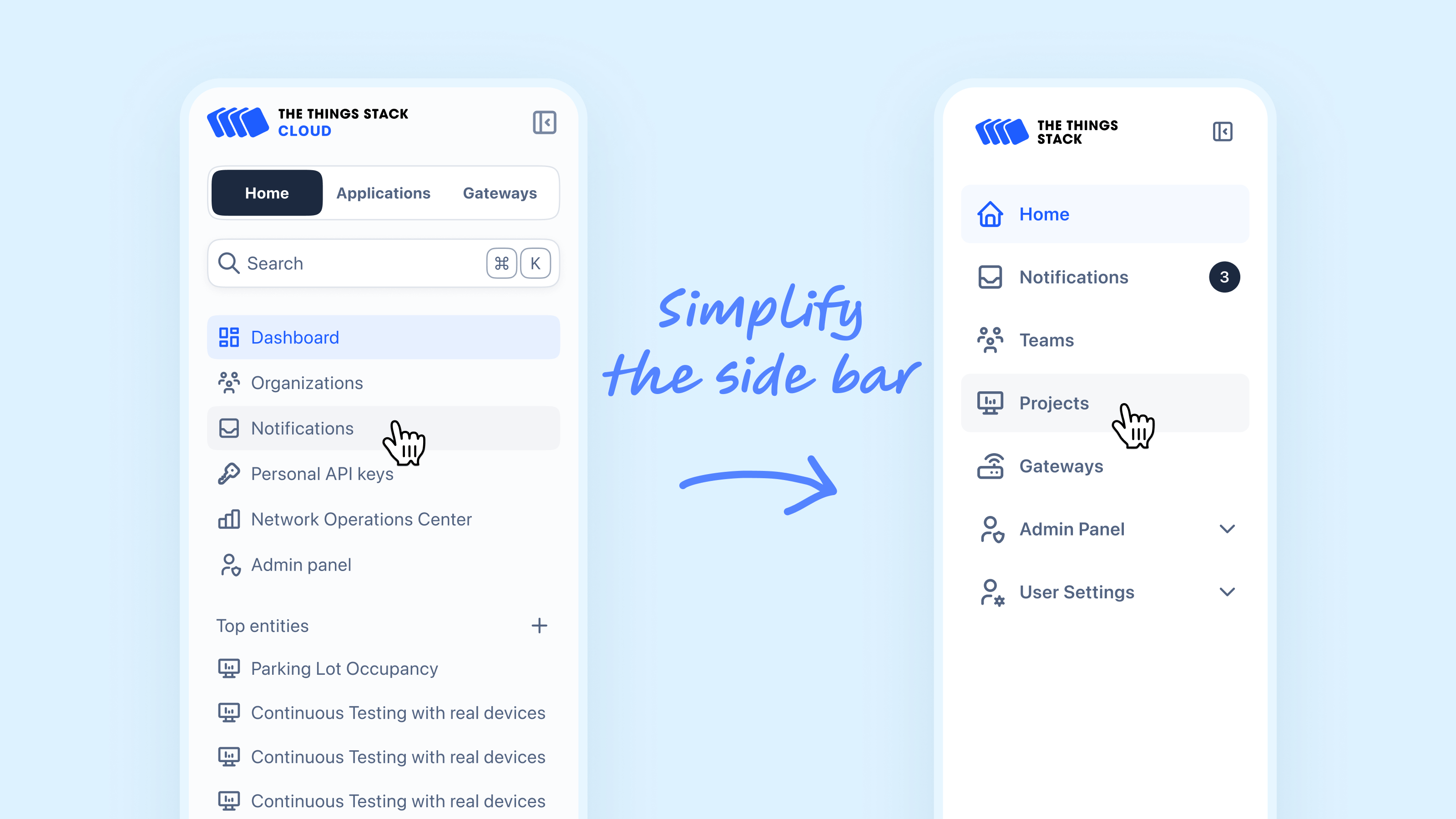 Additionally, user feedback revealed that the term “Applications” was unclear (while correct on a technical level), so we renamed it to “Projects.”