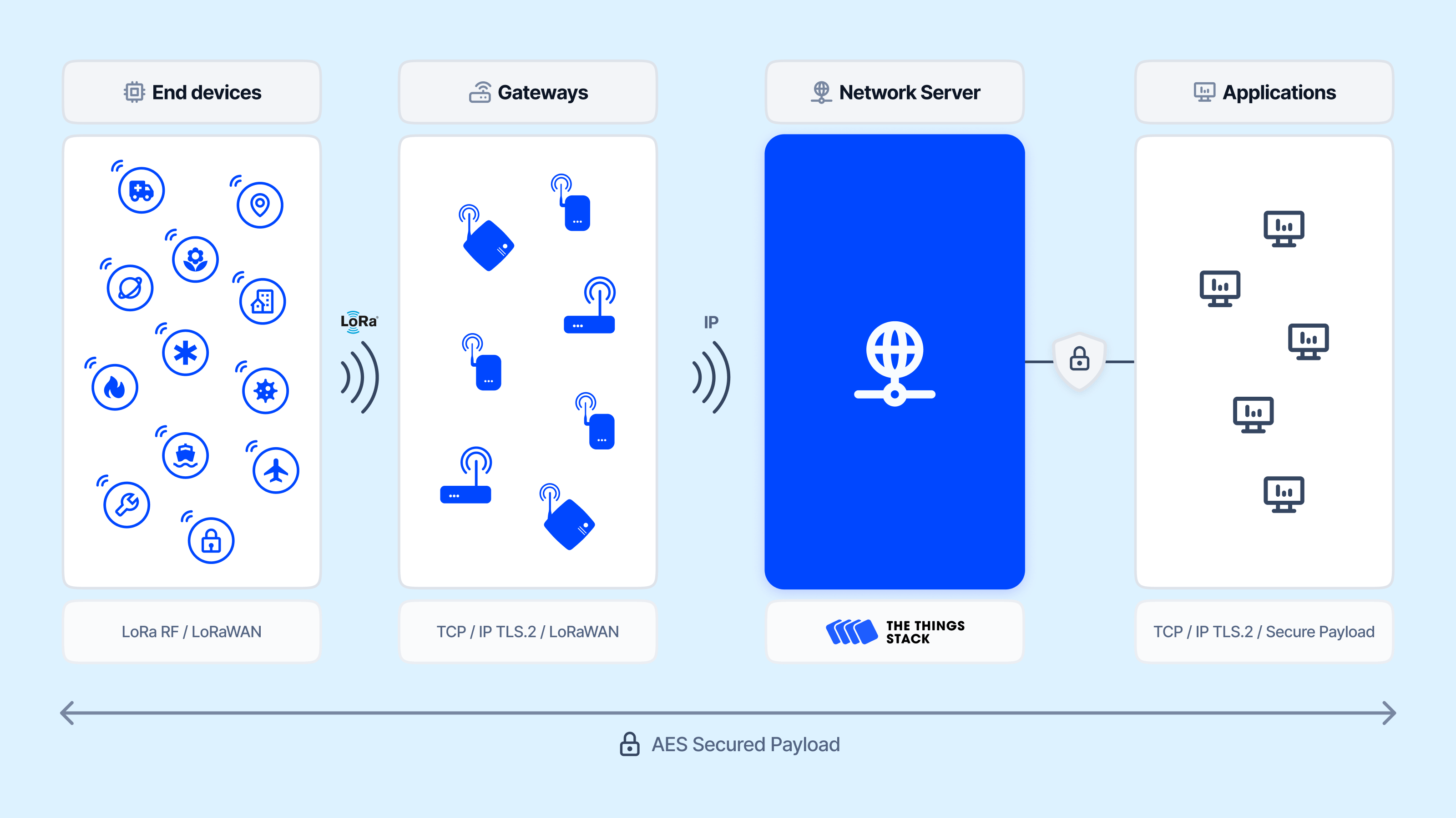 The Things Stack is a LoRaWAN® network and device management software that enables users to deploy a fully featured (e.g. APIs for device management, data routing, and application integration), enterprise-native, developer-friendly system in minutes and scale it seamlessly to millions of devices.